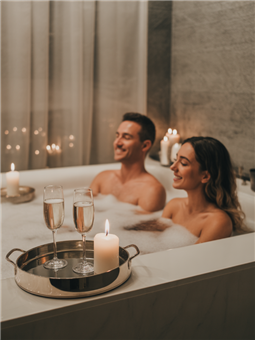 An intimate and relaxing experience for two in our private suite with candlelight ambiance.Perfect for celebrating love or simply unwinding together.
